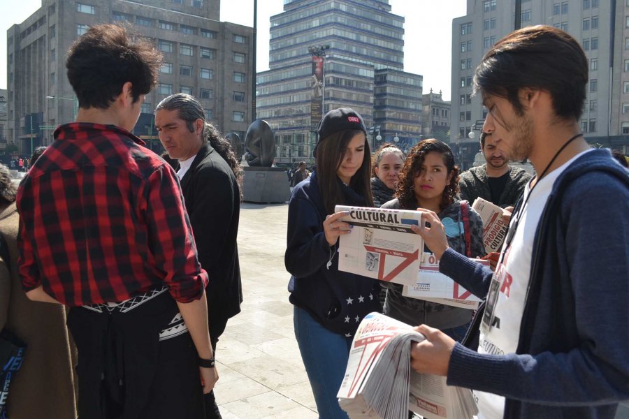 Un helicóptero de la policía del gobierno de la Ciudad de México que por segundos baja y rodea el Palacio de Bellas Artes, organilleros tocando Las Mañanitas, vendedores ambulantes, predicadores y bailarines de Hip hop, son el contexto que rodea a los visitantes.