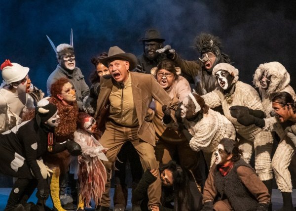 La historia se desarrolla en una granja llamada "Manor Farm", pero en esta puesta en la” Granja Charro”, donde los animales, liderados por los cerdos, se rebelan contra el dueño, el señor Sánchez. La trama comienza con un planteamiento Brechtiano de rompimiento de la realidad y la ficción en donde un Burro pesimista hace un planteamiento de lo que el público va a ver, para proseguir con una supuesta puesta en marcha de la Granja Charro.