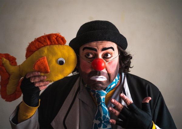 "Ni con palabras" es una obra de comedia clown del actor Javier López Ríos de la compañía Strongylus, que se caracteriza por la interacción con el público, pidiéndoles ayuda para construir una casa para el personaje principal, quien espera un paquete.