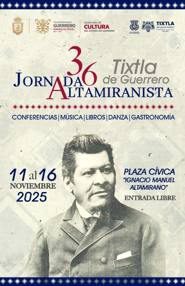 Del 11 al 16 de noviembre, vive la 36 Jornada Altamiranista en Tixtla de Guerrero, un homenaje a la vida y obra del ilustre Ignacio Manuel Altamirano.