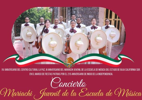 En el marco de las Fiestas Patrias y con motivo del XV Aniversario del Centro Cultural La Paz y el III Aniversario del Mariachi Juvenil de la Escuela de Música del Estado de BCS, un concierto especial