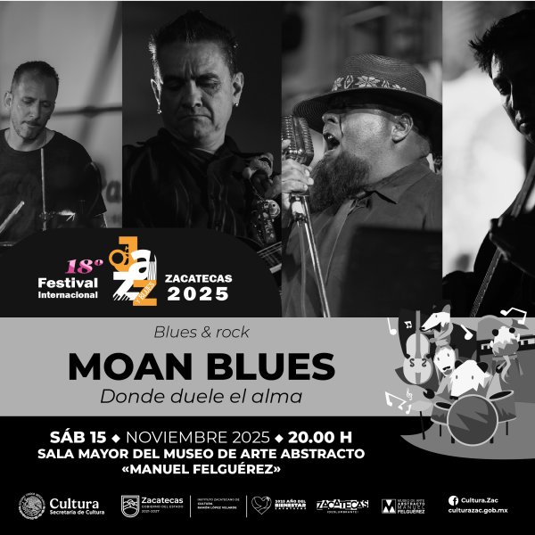 El Festival Internacional de Jazz y Blues Zacatecas 2025 se prepara para envolver a la ciudad con la fuerza, el ritmo y la emoción que solo estos géneros pueden ofrecer. Este año, el escenario contará con la participación de Moan Blues, una agrupación que ha conquistado corazones con su estilo auténtico y su poderosa interpretación.