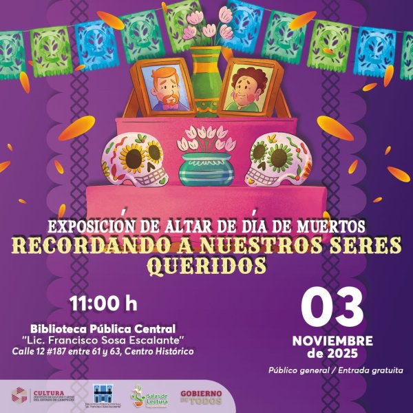 La Biblioteca Pública Central preserva la tradición campechana del altar de muertos con elementos originales y del sincretismo cultural.