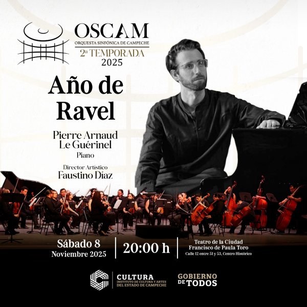 La Oscam ejecutará obras de Maurice Ravel como Pavana para una infanta difunta, Minueto antiguo, Concierto para piano en Sol Mayor y Bolero.