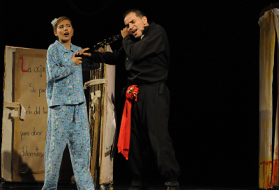 Se trata de la obra El juguetero, en la que aparecen los personajes Polina, Antolina, Leo y el Músico; la puesta en escena se presentó en la Biblioteca Vasconcelos, en ocasión de los festejos por el Día del Niño.