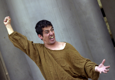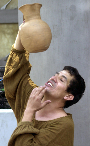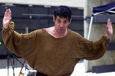 Destacó también la música que evoca las tradiciones europeas gracias a Cristian González, quien a momentos toca hasta dos flautas simultáneamente, así como gaitas que acentúan los momentos chuscos, además de acompañar las piruetas de Lázaro por todo el foso al aire libre.