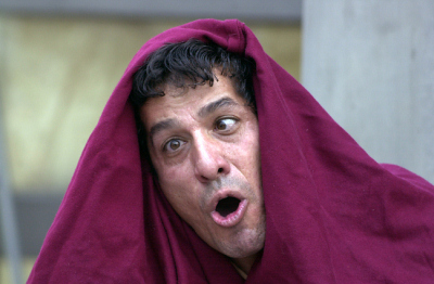 La parte clown del espectáculo estuvo a cargo de Juan Castrejón, único protagonista, quien por momentos invitaba al público a participar en la acción o a opinar para resolver su incierto destino.