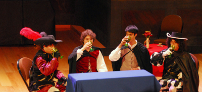 Con una muy sencilla escenografía (conformada por mesas y sillas) y con el acompañamiento de la Banda de la ENP No. 6, se narraron las peripecias de un joven caballero entregado a una vida desenfrenada de apuestas y amoríos en una obra divida en cuatro actos, en la que aparecieron los ya conocidos personajes de Butarelli, Ciutti, Don Diego Tenorio, Don Gonzalo, Centellas, Avellaneda, Don Luis Mejía, Gastón, Doña Ana, Brígada, Lucía y Doña Inés.