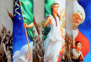 Los murales de México constituyen extraordinarias crónicas de la historia y la cultura de la nación. A través de las formas artísticas nos entregan imágenes de gran elocuencia que narran fragmentos indispensables en la consolidación de la nacionalidad mexicana. Por ello es justo mencionar al pintor y arquitecto Juan O´Gorman con su mural Retablo de la Independencia, ubicado en el Castillo de Chapultepec, así como el maestro Alfredo Zalce, quien resalta por sus murales en el Palacio de Gobierno de Morelia, en los que la iconografía recrea la cultura michoacana de manera espléndida.Especial atención merece la pared central del cubo de la escalera, donde aparecen Hidalgo y Morelos, con firmeza, llamando a la lucha.