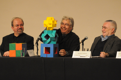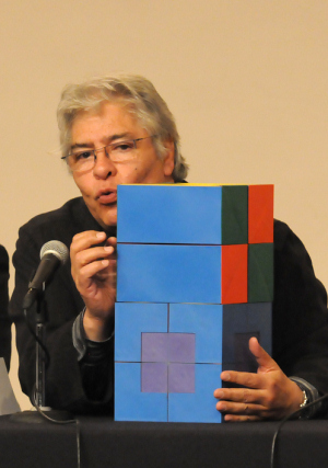 Al termino de la presentación, el escultor no ocultó su emoción de ver publicado un libro que reúne opiniones de críticos de arte, escritores y de científicos hablando de su trabajo, así como un catálogo (casi) exhaustivo de su producción artísticas. Concedió a Conaculta unos minutos para hablar de su libro.