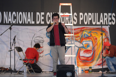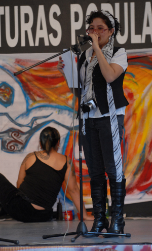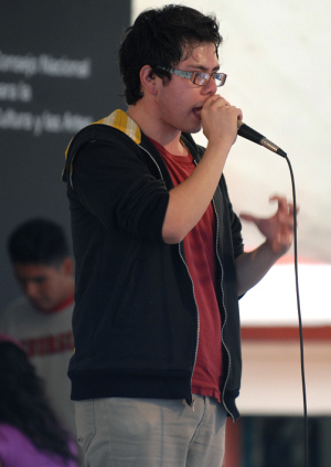 Al otro extremo del patio, bajo la guía de Miguel Ángel González, uno de los creadores del colectivo, y siguiendo el ritmo de rap, numerosos poetas urbanos como Sergio García, Mario Ducks, Carlos Atl, Erick Fresco, Jéssica Gómez y Ektor Zetta realizaron una apasionada muestra de poesía en la que no faltaron los gritos desaforados, las consignas y los pronunciamientos.