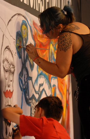 El Museo de Culturas Populares se convirtió en un caleidoscopio de propuestas contemporáneas, donde un grupo de graffiteros del colectivo La ruta, integrado por Adrián Figueroa, Karla Hernández, Óscar Pimentel y Luna Nuñez, pintaron diversas figuras durante la tarde, mientras la tatuadora Nancy Medina dio muestras de sus diseños trabajando en vivo la piel de un voluntario.