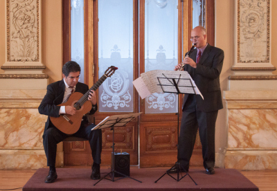 Juan Carlos Laguna en la guitarra y Sergio Fiorito al clarinete participaron en el ciclo “Geometría sonora”