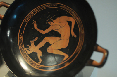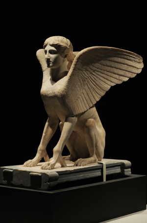 En las piezas de mitología griega se aprecia las mezclas de seres humanos y animales: la Medusa, la Esfinge, emblemática para los griegos por su cabeza de mujer, cuerpo de león y alas de águila; el Centauro, mitad hombre y mitad caballo, y el Minotauro, de cuerpo humano y cabeza de toro, también se exhiben en ánforas; los sátiros, seres míticos con orejas y cola de caballo o rabo de cabra.