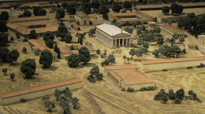 Se exhibe también una maqueta y un mapa de Olimpia (escala 1:200), donde se observa el emplazamiento de cómo sería la antigua ciudad griega hacia 100 a.C., antes de las construcciones romanas. En la sección “Atletas” se podrán ver varias obras esculpidas en honor a dichos hombres, así como copas (kýlix), vasijas para agua (hydiría) y ánforas decoradas con los cuerpos de atletas y jinetes.