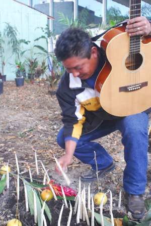 A través de la recreación de un altar de muertos y un panteón tradicional se inauguró al mediodía de este viernes 26 de octubre la exposición Somos los peregrinos… Ofrendas ch´oles para las ánimas en el patio central del Museo Nacional de Antropología.