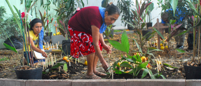 En la parte del panteón, se aprecia flores y plantas típicas del estado. Las tumbas simuladas con montículos de tierra destacan por tener velas de distintos tamaños que son encendidas cada 2 de noviembre.