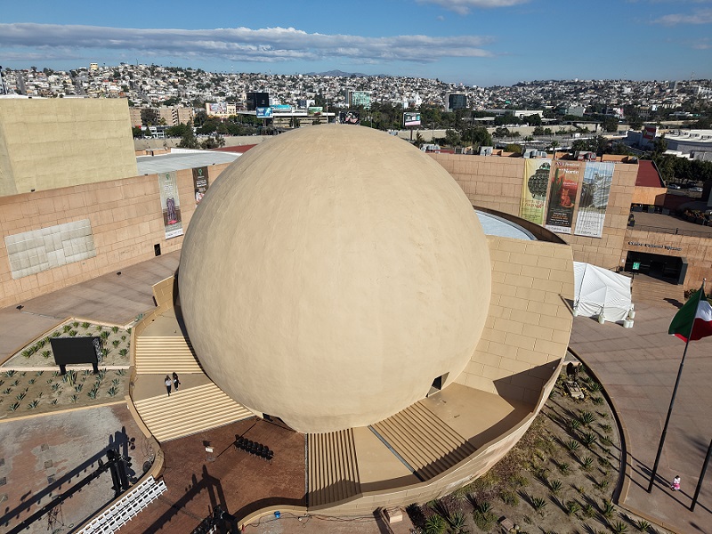 Durante el recorrido se explicó que, además de los mantenimientos constantes que los espacios requieren, en el último año se trabajó en el Domo IMAX, con la remoción completa de las capas previas de pintura e impermeabilizante, reparación detallada de grietas y oquedades, limpieza profunda de las superficies, aplicación de un sistema de impermeabilización y acabado de alto desempeño con una capa final de protección que contiene el color original característico del Domo.
