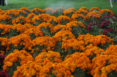 Las flores constituyen un elemento imprescindible para el festejo mexicano del Día de Muertos, la más común en la flor amarilla cempasúchil, pero también se utilizan rosas, claveles o girasoles, según la región. En el norte de México, y en particular en el estado de Chihuahua, se usa más comúnmente el crisantemo; donde desde temprana hora se llevan a los panteones arreglos y coranas de esta flor. El crisantemo es oriundo de China, donde tiene un uso ornamental desde hace miles de años, en Japón se le considera flor divina; se cree que el crisantemo llegó a México desde España en el siglo XIX.